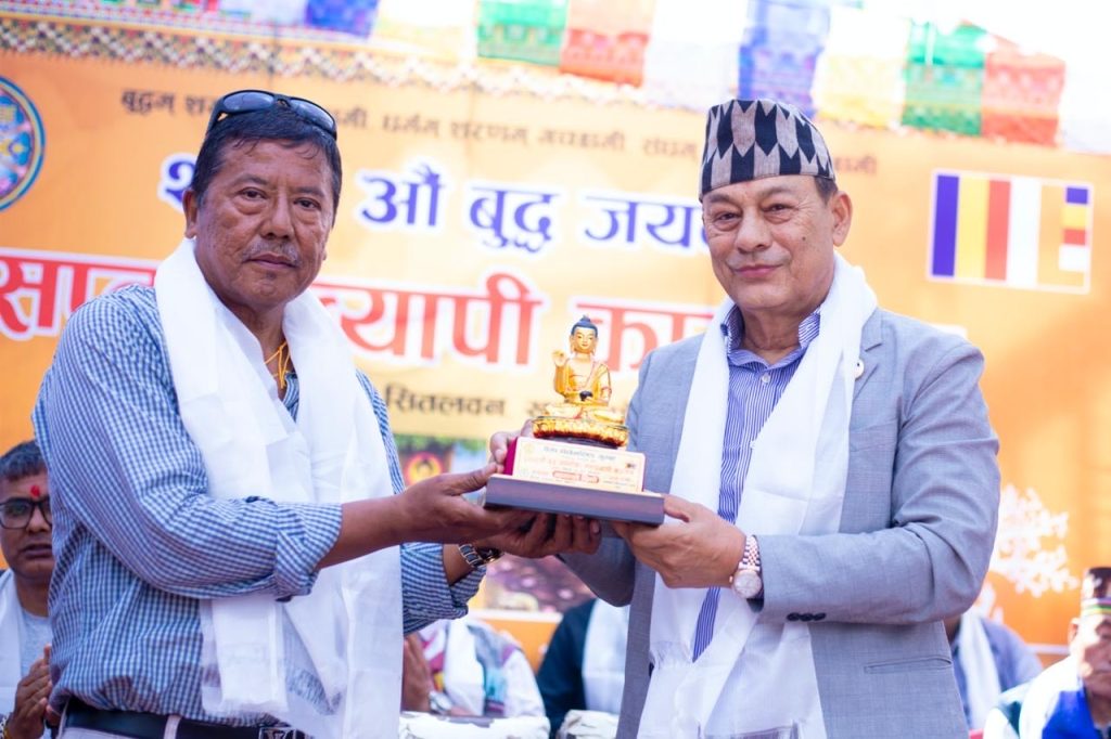 कार्यक्रममा खेम्पो आचार्य सम्तेन लामाले भगवान गौतम बुद्धको बुद्धत्व, परिनिर्वाण तथा उपदेशबारे प्रवचन दिनुभएको थियो । उहाँले मानिसको दुखको कारण तृष्णा भएको साथै तृष्णालाई जित्न सके दुखलाई जित्न सकिनेमा जोड दिनुभयो । वैशाख शुक्लपक्षको पूर्णिमा तिथिमा महात्मा गौतम बुद्धको त्रि–संयोग अर्थात् जन्म, ज्ञान प्राप्ति र महापरिनिर्वाण समेत भएकाले योे तिथिलाई संसारका बौद्ध धर्मावलम्बीहरूले भगवान् बुद्धप्रति अत्यन्त श्रद्धा एवं भक्तिभाव व्यक्त गर्ने पावन दिवसका (बुद्ध जयन्ती) रूपमा मनाउने गरेको उहाँले स्मरण गर्नुभयो ।