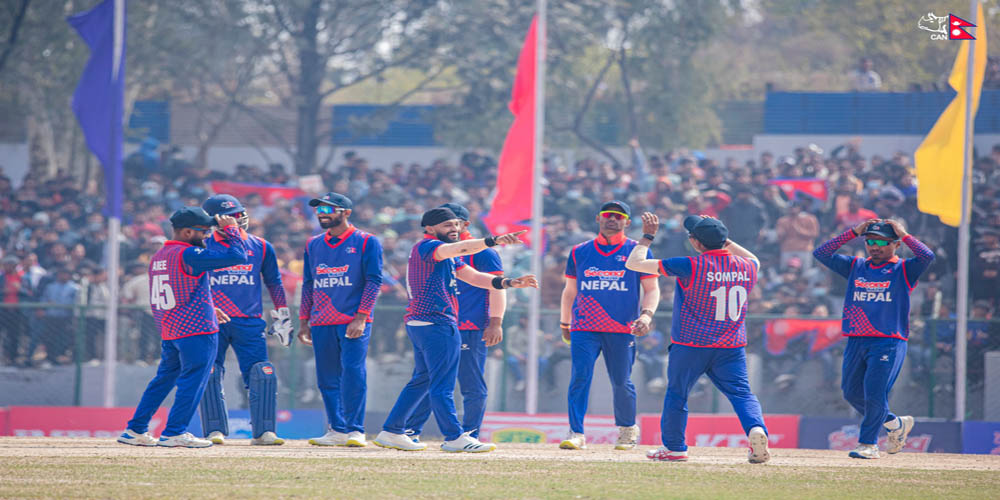 नेपालका लागि सोमपाल कामीले तीन विकेट लिए भने करण केसी, ललित राजवंशी र सन्दीप लामिछानेले समान दुई–दुई विकेट लिए ।