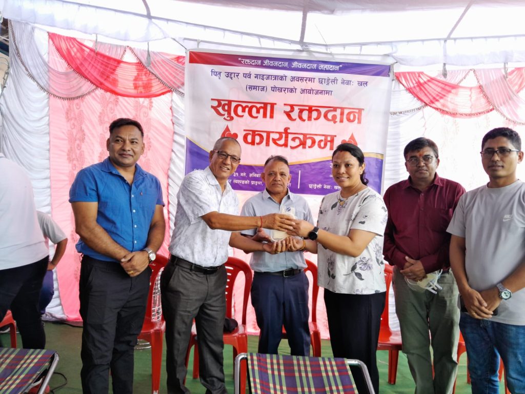 छाङ्गेली नेवाः खल समाजले पितृ उद्दार पर्व गाइजात्राको अवसरमा रक्तदान कार्यक्रम सम्पन्न गरेको छ । शनिबार पोखरा न्युरोड स्थित मल्ल फर्निचर ल्याण्डको प्राङ्गणमा सम्पन्न रक्तदान कार्यक्रममा ६२ युनिट रगत संकलन भएको छ ।