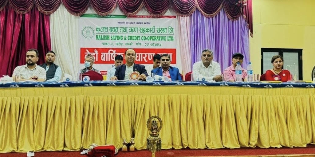 पोखरा महानगरपालिका वडा नम्बर ८ न्युरोडमा अवस्थित कलश बचत तथा ऋण सहकारी संस्था लि. को १३ औं साधारणसभा सम्पन्न भएको छ । साधारण सभाको उद्घाटन पोखरा महानगरपालिका वडा नम्बर २४ का सदस्य कृष्ण सुबेदीले गर्नुभएको थियो । कार्यक्रममा उहाँले केही सहकारीमा आएकोे समस्याका कारण समग्र सहकारी क्षेत्रलाई अप्ठेरो परेको सुनाउनुभयो । उहाँले सहकारीले सामाजिक क्षेत्रको उत्थानका लागि सहकार्य गर्न जरुरी रहेको बताउनुभयो ।
