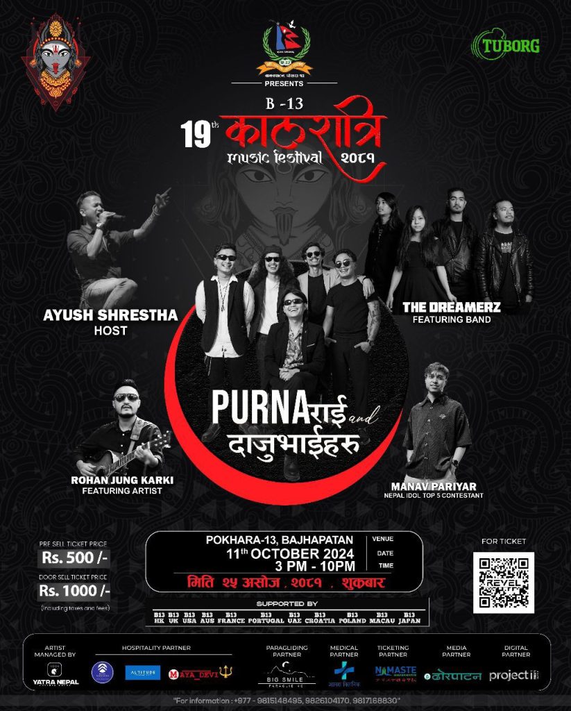 पोखरा १३, बाँझापाटनमा रहेको श्री सत्य युवा सेवा समितिले आउँदो असोज २५ गते १९ औं संस्करणको ‘कालरात्री म्युजिकल फेस्टिभल–२०८१’ आयोजना गर्ने भएको छ ।