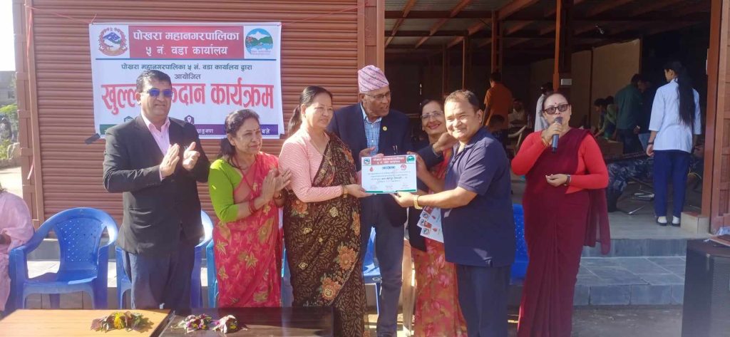 वडा कार्यालय अगाडि भएको रक्तदान कार्यक्रममा पोखरा महानगरपालिकाका उपप्रमुख मञ्जुदेवी गरुङले रगतको विकल्प रगत नै भएकाले रक्तदान महादान भएको बताइन् ।