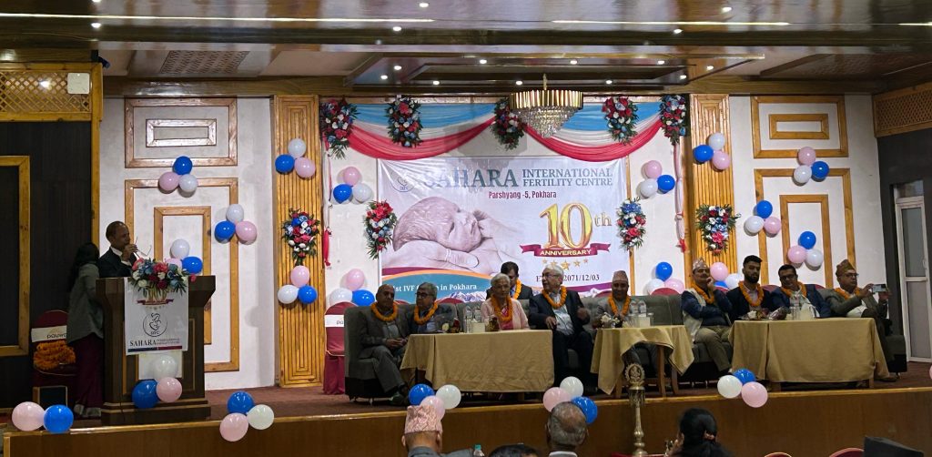 पोखरा चैत ३/ पोखराको प्रस्याङमा रहेको निसन्तान दम्पतीको लागि सन्तान दिने साहारा इन्टरनेशनल फर्टिलिटि सेन्टरले १० बर्षको अवधिमा ३ हजार ५ सय दम्पतीलाई सेवा प्रदान गर्दै,१ हजार दम्पतीलाई सन्तान दिन सफल भएको छ । फर्टिलिटि स्थापनाको १० बर्ष पुरा भएको अवसरमा शनिवार पोखरामा आयोजना गरिएको बार्षिक उत्सव कार्यक्रम मार्फत फर्टिलिटिका अध्यक्ष एबम सञ्चालक डाक्टर गिरधारी शर्माले उक्त कुरा बताएका हुन।