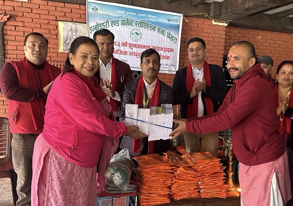 इम्बोइडरी एण्ड गार्मेन्ट्स एशोसिएसन(एगा) पोखराले केदारेश्वर महादेवमणि गुरुकुल विद्याश्रमका विद्यार्थीलाई टिसर्ट सहित स्टेशनरी र खेलकुदका सामाग्री सहयोग गरेको छ ।